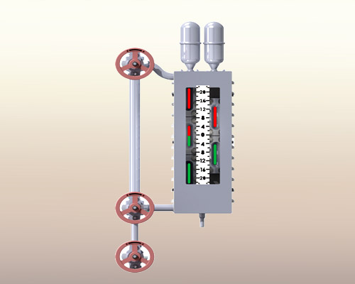 在水位計本體上設置兩列多個(gè)窗口,全量程范圍內水位顯示無(wú)盲區。