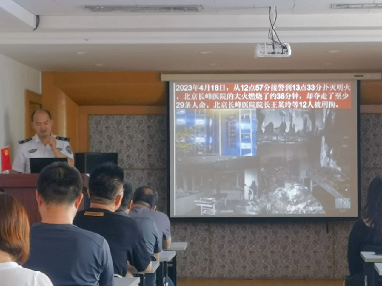 宣講會(huì )上,周教官為大家普及了消防知識,通過(guò)“北京某醫院大火”、“央視大樓火災”等火災現場(chǎng)圖片令在座所有人深刻認識到火災的無(wú)情與可怕。周教官結合工作和生活實(shí)際,從如何預防電氣火災、如何自救與逃生、如何正確使用消防器材等方面均做了深入淺出的講授,并特別提醒全體員工要始終保持安全意識,堅決克服盲目樂(lè )觀(guān),杜絕松懈麻痹,真切落實(shí)各項防范措施,確保人身與財產(chǎn)安全。